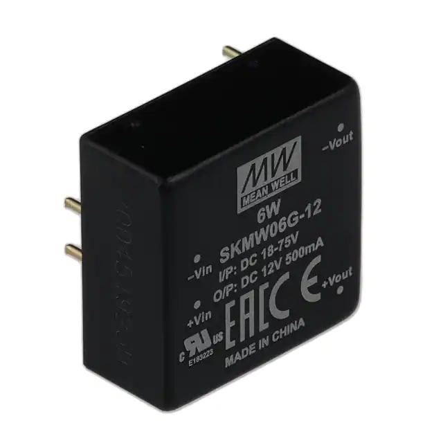 This is manufactured by MEAN WELL USA Inc.. The manufacturer part number is SKMW06G-12. It is assigned with possible HTSUS value of 8504.40.9580. The product is rohs3 compliant. It has a 12v output voltage. The product features power and watts of 6 w. The maximum product's output current is 500ma. It is approved by ce, curus, eac. Moreover, the product comes in [Package/ Case]. It offers 18v of minimum input voltage. It comes in isolated module configuration. The product is widely employed in ite (commercial). In addition, it is reach unaffected. It is a highly efficient product with an 85% of high efficiency. Its maximum input voltage is 75v. It is shipped in tube. The product's diameters include 1.00" l x 1.00" w x 0.46" h (25.4mm x 25.4mm x 11.7mm). It has a long 23 weeks standard lead time. 1.5 kv of isolation voltage. Its typical moisture sensitivity level is not applicable. The product is available in through hole configuration. The product skmw06 (6w), is a highly preferred choice for users. The product has -40°c ~ 85°c (with derating) operating temperature range. Moreover, it corresponds to skmw06, a base product number of the product. Additionally, the product is supplied with 1 outputs. The product is designated with the ear99 code number