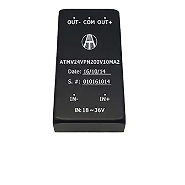 This is manufactured by Analog Technologies, Inc.. The manufacturer part number is ATMV24VPN200V10MA2. It is assigned with possible HTSUS value of 8504.40.9580. The product is rohs3 compliant. The product features power and watts of 4 w. The maximum product's output current is 10ma, 10ma. Moreover, the product comes in [Package/ Case]. It offers 18v of minimum input voltage. It comes in isolated module configuration. The product is widely employed in ite (commercial). It has a 200v output voltage. -200v of voltage output 2. It is a highly efficient product with an 74% of high efficiency. Its maximum input voltage is 36v. It is shipped in tray. The product's diameters include 2.00" l x 1.00" w x 0.41" h (50.8mm x 25.4mm x 10.5mm). 1.5 kv of isolation voltage. Its typical moisture sensitivity level is 1 (unlimited). The product is available in through hole configuration. The product has -40°c ~ 85°c (with derating) operating temperature range. Additionally, the product is supplied with 2 outputs. The product is designated with the ear99 code number