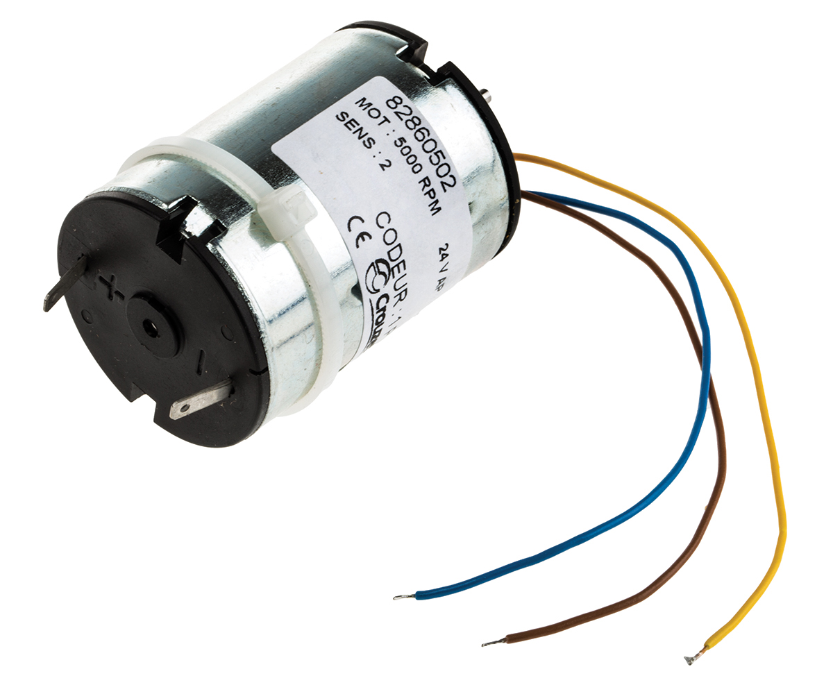 This is Brushed DC Motor 3.9 W 24 V dc 7.7 mNm 3700 rpm 2mm Shaft Diameter manufactured by Crouzet. The manufacturer part number is 82860502. The product has a current rating of 260 ma. The given dimensions of the product include 32.2 (dia.) x 44.6 mm. Its accurate length is 44.6mm.