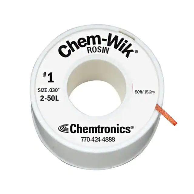 This is manufactured by Chemtronics. The manufacturer part number is 2-50L. It is assigned with possible HTSUS value of 7413.00.1000. The product is rohs3 compliant. Furthermore, the product is 0.030" (0.76mm) wide. The product is highly reliable with a long-lasting period of 24 months. It comes in rosin, non activated (r) configuration. In addition, it is reach unaffected. Its warranty starts from date of manufacture. It is shipped in bulk. Its typical moisture sensitivity level is not applicable. Its accurate length is 50' (15.24m). It has a long 6 weeks standard lead time. It has a classic white colour. The product chem-wik®, is a highly preferred choice for users. The product is designated with the ear99 code number