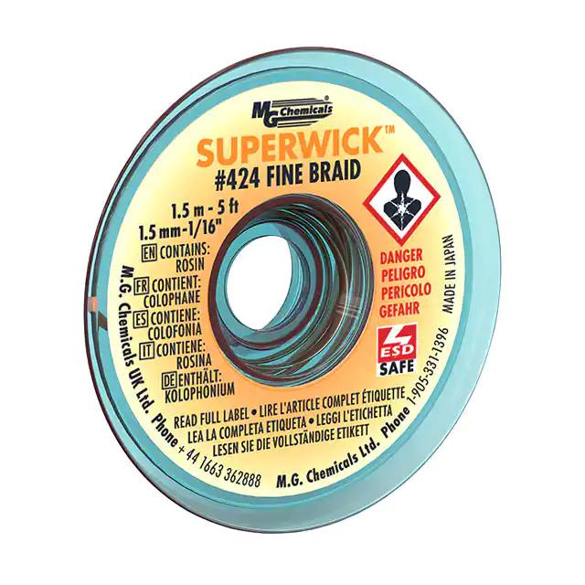 This is manufactured by MG Chemicals. The manufacturer part number is 424. It is assigned with possible HTSUS value of 7413.00.1000. The product is rohs3 compliant. Furthermore, the product is 0.050" (1.27mm) wide. It comes in rosin, mildly activated (rma), lead free configuration. In addition, it is reach unaffected. It offers storage features at 72°f ~ 81°f (22°c ~ 27°c). It is shipped in bulk. Its typical moisture sensitivity level is not applicable. Its accurate length is 5' (1.524m). It has a long 2 weeks standard lead time. It has a classic yellow colour. The product superwick, 400, is a highly preferred choice for users. The product is designated with the ear99 code number