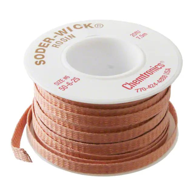 This is manufactured by Chemtronics. The manufacturer part number is 50-6-25. It is assigned with possible HTSUS value of 7413.00.1000. The product is rohs3 compliant. Furthermore, the product is 0.210" (5.33mm) wide. The product is highly reliable with a long-lasting period of 24 months. It comes in rosin, non activated (r), lead free configuration. In addition, it is reach unaffected. Its warranty starts from date of manufacture. It is shipped in bulk. Its typical moisture sensitivity level is not applicable. Its accurate length is 25' (7.62m). It has a long 6 weeks standard lead time. It has a classic red colour. The product soder-wick® sw 50, is a highly preferred choice for users. The product is designated with the ear99 code number
