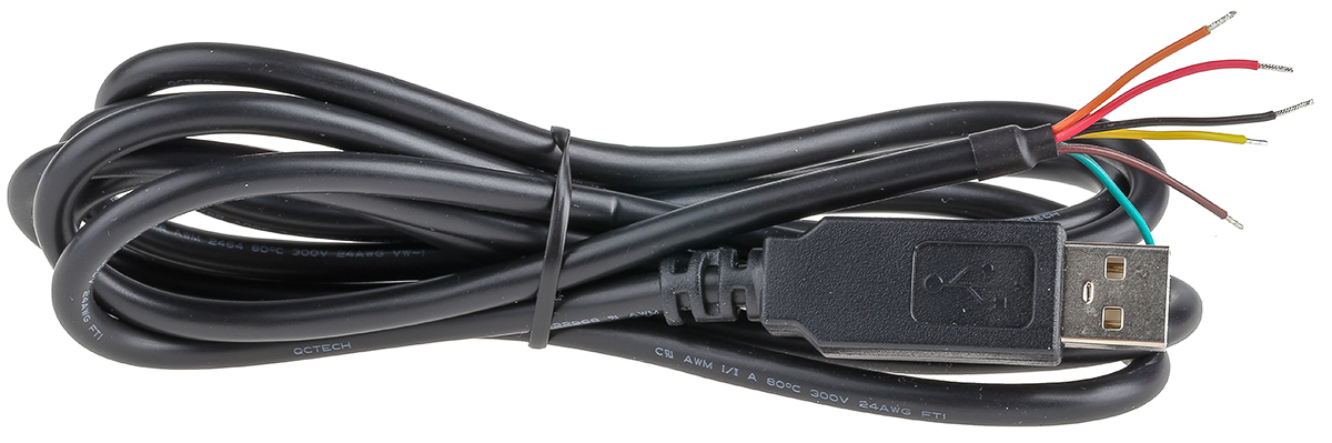 This is 3.3 V TTL Wire End USB to UART Cable manufactured by FTDI Chip. The manufacturer part number is TTL-232R-3V3-WE.