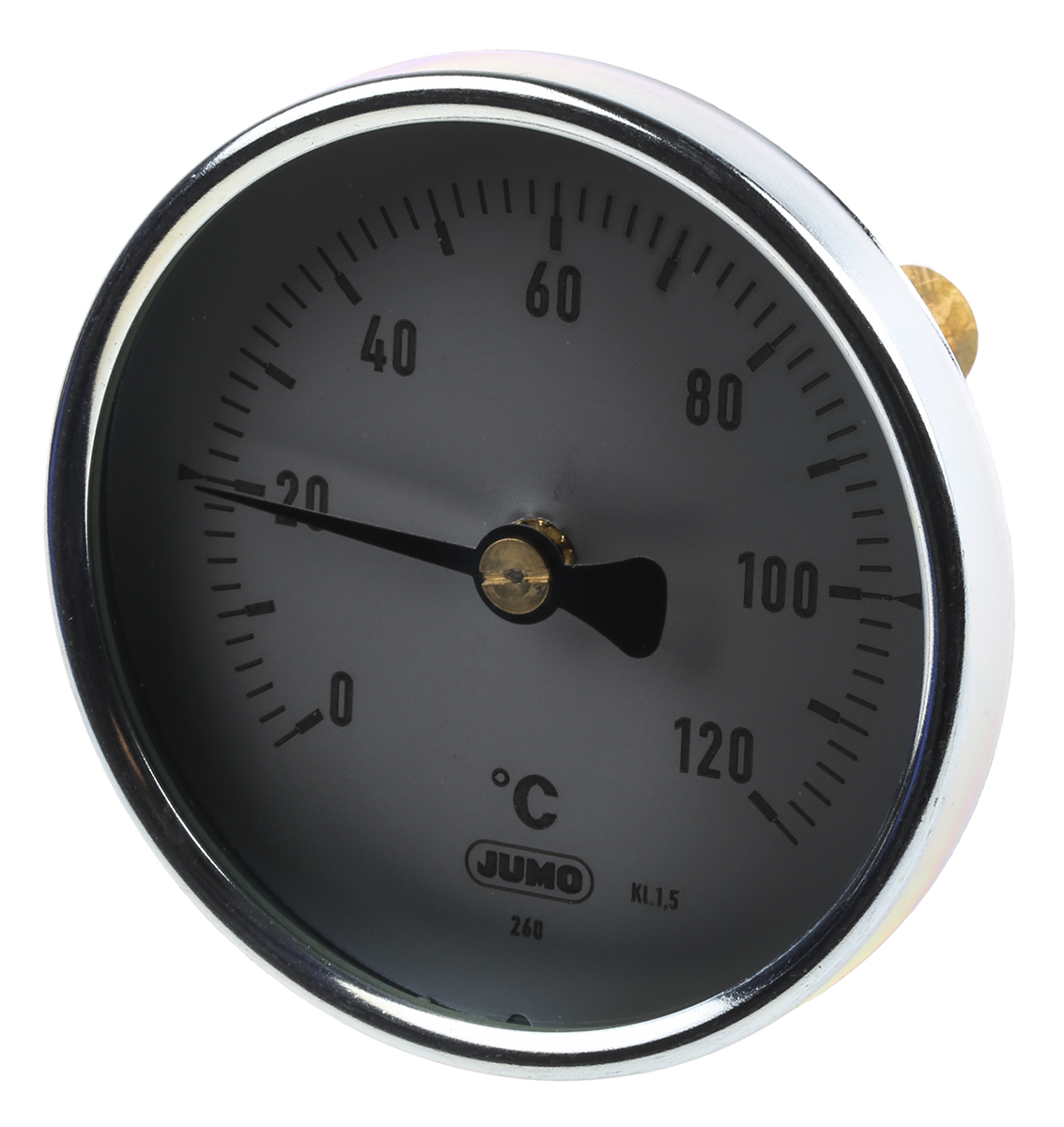 This is Dial Thermometer Centigrade Scale 0 → +120 °C Immersion manufactured by Jumo. The manufacturer part number is 608001/0180-818-913-12-104-46-46-50/000.