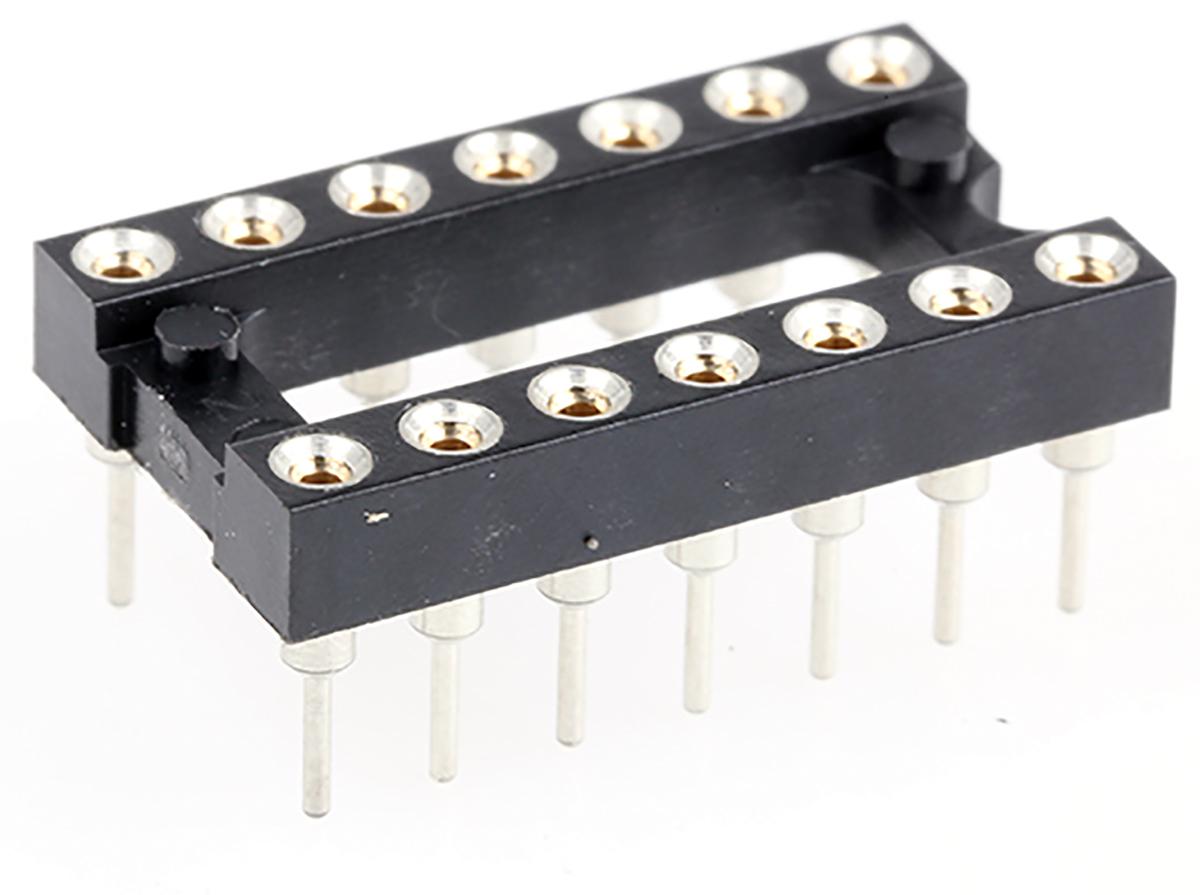 This is 2.54mm Pitch Vertical 14 Way Through Hole Turned Pin Open Frame IC Dip Socket manufactured by E-TEC. The manufacturer part number is POS-314-S001-95. The product contains 14 contacts. The product has a vertical orientation. The product is available in through hole configuration. The product is made from sturdy beryllium copper materials. The product also features robust pbt housing material. Furthermore, the product is 4.45mm wide. Its accurate length is 17.7mm. Moreover, the product is 2.54mm