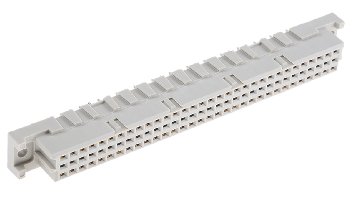 This is 64 Way 2.54mm Pitch Type C Class C2 2 Row Straight DIN 41612 Connector Socket manufactured by ERNI. The manufacturer part number is 284170. It comes in 2 of rows. The product has a current rating of 2a. Whereas, the minimum operating temperature of the product is -55°c. The product is available in through hole configuration. In addition, female is the available "Gender" of the product. The product also features robust pbt housing material. Moreover, the product is 2.54mm The product contains 64 contacts. It comes in c configuration. It has a maximum operating temperature of +125°c. The product is made from sturdy copper alloy materials.