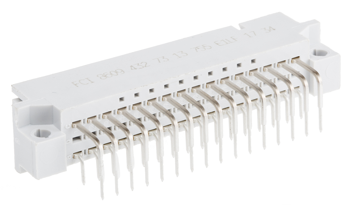 This is 32 Way 2.54mm Pitch Type C/2 Class C2 2 Row Right Angle DIN 41612 Connector Plug manufactured by RS Pro. The manufacturer part number is 251-302. It comes in 2 of rows. The product has a current rating of 1.5a. Whereas, the minimum operating temperature of the product is -55°c. The product is available in through hole configuration. Moreover, the product has a nominal 1 kv ac voltage rating. In addition, male is the available "Gender" of the product. The product also features robust pet housing material. Moreover, the product is 2.54mm The product contains 32 contacts. It comes in c/2 configuration. It has a maximum operating temperature of +125°c. The product is made from sturdy copper alloy materials.