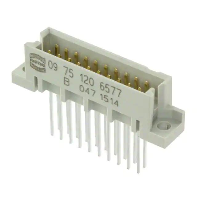 This is manufactured by HARTING. The manufacturer part number is 09751206577. Additionally, the product is designed with 3q Style. It is assigned with possible HTSUS value of 8536.69.4040. The product is rohs3 compliant. It is designed from highly reliable thermoplastic, glass filled insulating material. The product has -55°c ~ 125°c operating temperature range. The product carries possible position value of 20. In addition, it is reach unaffected. It comes in 2 of rows. It carries ul94 v-0 of material flammability rating. It is shipped in bulk. header, male pins Connector type offer robust functionality. Furthermore, the product is galvanized with excellent gold-palladium contact finishing. Its typical moisture sensitivity level is 1 (unlimited). The product features wire wrap termination style. It has a long 8 weeks standard lead time. Additionally, the product's output is 2a The product is available in through hole configuration. The product din 41612, is a highly preferred choice for users. Moreover, the product is 0.100" (2.54mm) However, all is the Number of Positions Loaded. The product is designated with the ear99 code number