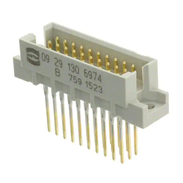 This is manufactured by HARTING. The manufacturer part number is 09291306974. Additionally, the product is designed with 3r Style. It is assigned with possible HTSUS value of 8536.69.4040. The product is rohs3 compliant. It is designed from highly reliable thermoplastic, glass filled insulating material. The product has -40°c ~ 105°c operating temperature range. The product carries possible position value of 30. In addition, it is reach unaffected. It comes in 3 of rows. It carries ul94 v-0 of material flammability rating. It is shipped in bulk. header, male pins Connector type offer robust functionality. Furthermore, the product is galvanized with excellent gold-palladium contact finishing. Its typical moisture sensitivity level is 1 (unlimited). The product features press-fit termination style. It has a long 8 weeks standard lead time. Additionally, the product's output is 2a The product is available in through hole configuration. The product din 41612, is a highly preferred choice for users. Moreover, the product is 0.100" (2.54mm) However, all is the Number of Positions Loaded. The product is designated with the ear99 code number