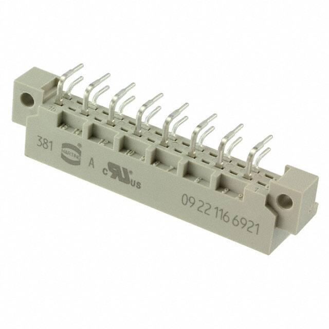 This is manufactured by HARTING. The manufacturer part number is 09221166921. Additionally, the product is designed with 2b Style. It is assigned with possible HTSUS value of 8536.69.4040. The product is rohs3 compliant. It is designed from highly reliable polybutylene terephthalate (pbt), glass filled insulating material. The product has -55°c ~ 125°c operating temperature range. The product carries possible position value of 32. In addition, it is reach unaffected. It comes in 2 of rows. It carries ul94 v-0 of material flammability rating. It is shipped in bulk. header, male pins Connector type offer robust functionality. Furthermore, the product is galvanized with excellent gold or gold-palladium contact finishing. Its typical moisture sensitivity level is 1 (unlimited). The product features solder termination style. It has a long 12 weeks standard lead time. Additionally, the product's output is 2a The product is available in through hole, right angle configuration. The product din 41612, is a highly preferred choice for users. Moreover, the product is 0.100" (2.54mm) However, 16 is the Number of Positions Loaded. The product is designated with the ear99 code number