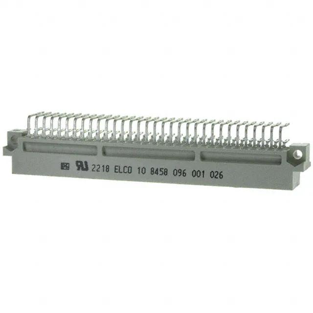 This is manufactured by KYOCERA AVX. The manufacturer part number is 108458096001026. Additionally, the product is designed with c Style. It is assigned with possible HTSUS value of 8536.69.4040. The product is rohs3 compliant. It is designed from highly reliable polyester thermoplastic, glass filled insulating material. The product has -65°c ~ 125°c operating temperature range. The product carries possible position value of 96. In addition, it is reach unaffected. It comes in 3 of rows. It carries ul94 v-0 of material flammability rating. It is shipped in bulk. header, male pins Connector type offer robust functionality. Furthermore, the product is galvanized with excellent gold contact finishing. Its typical moisture sensitivity level is 1 (unlimited). The product features press-fit termination style. It has a long 30 weeks standard lead time. Additionally, the product's output is 3a The product is available in through hole, right angle configuration. The product 8458, is a highly preferred choice for users. Moreover, the product is 0.100" (2.54mm) However, 64 is the Number of Positions Loaded. The product is designated with the ear99 code number