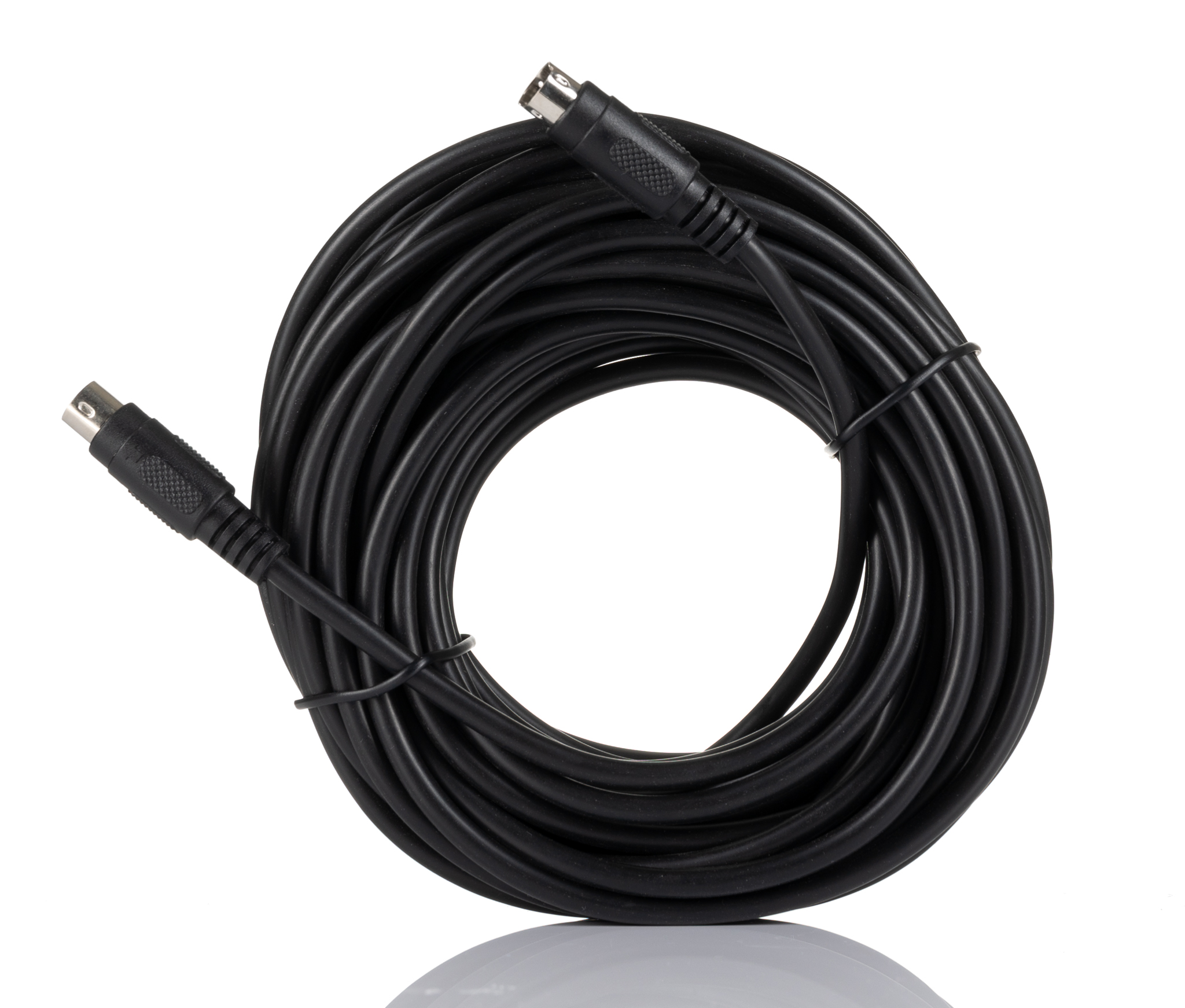 This is 10m 4-Pin Male Mini-DIN to 4-Pin Male Mini-DIN Black SVHS Audio Video Cable Assembly manufactured by RS Pro. The manufacturer part number is 742-4282. It is a typical s-video cable. Its accurate length is 10m.
