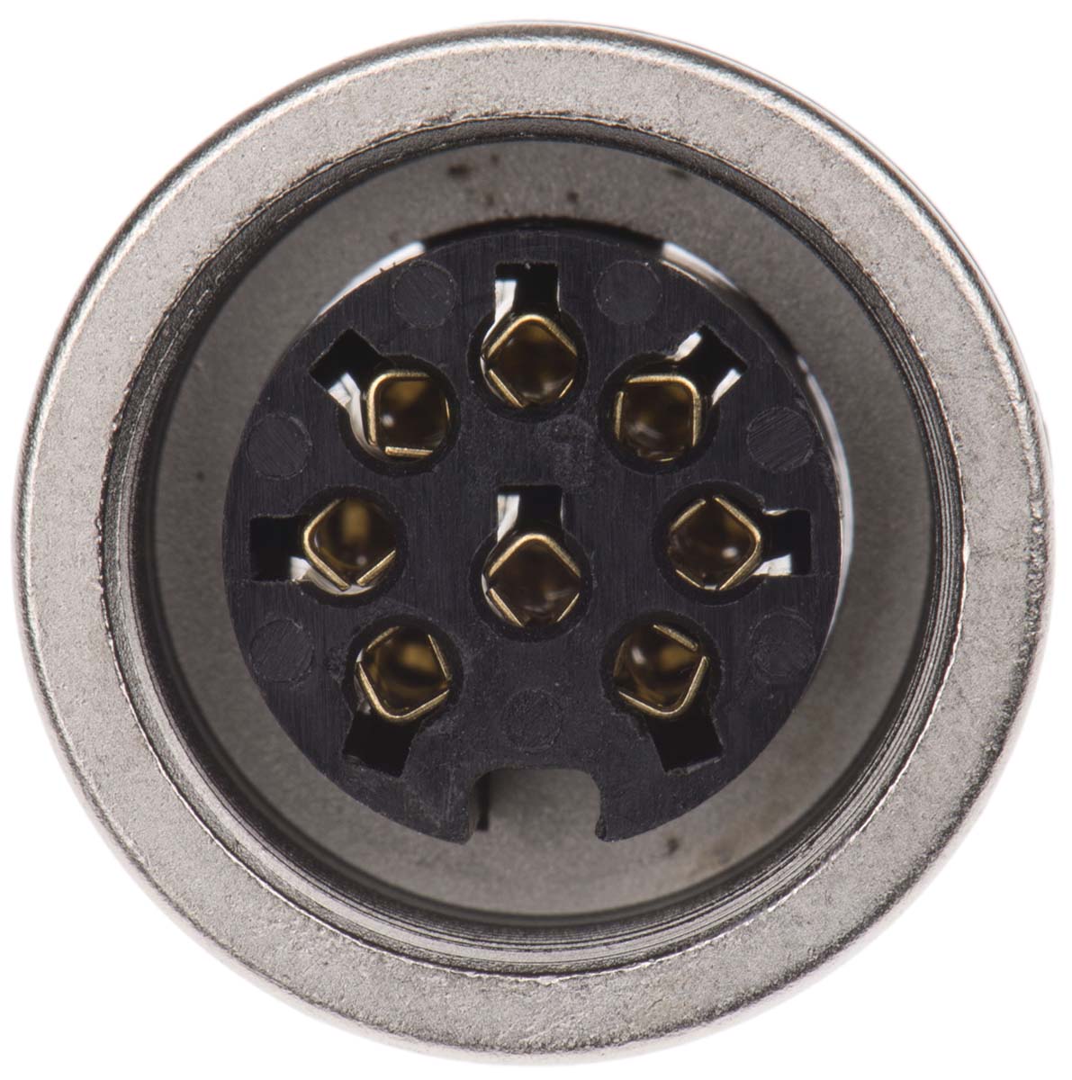 This is KFV Series 8 Pole Din Socket Socket DIN EN 60529 5A 60 V ac IP40 manufactured by Lumberg. The manufacturer part number is KFV 81. The product has a current rating of 5a. The product is available in panel mount configuration. In addition, female is the available "Gender" of the product. Moreover, the product has a nominal 60 v ac voltage rating. The product kfv, is a highly preferred choice for users. The product contains 8 contacts. It has a maximum operating temperature of +85°c. Whereas, the minimum operating temperature of the product is -40°c. The product is made from sturdy brass materials.