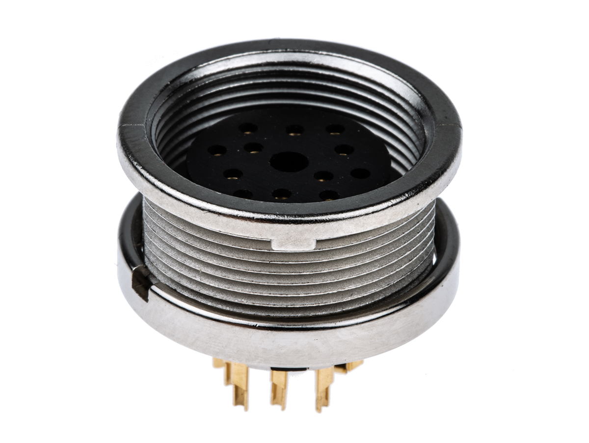This is KFV Series 12 Pole Din Socket Socket DIN EN 60529 3A 60 V ac IP40 manufactured by Lumberg. The manufacturer part number is KFV 120. The product has a current rating of 3a. The product is available in panel mount configuration. In addition, female is the available "Gender" of the product. Moreover, the product has a nominal 60 v ac voltage rating. The product kfv, is a highly preferred choice for users. The product contains 12 contacts. It has a maximum operating temperature of +85°c. Whereas, the minimum operating temperature of the product is -40°c. The product is made from sturdy brass materials.