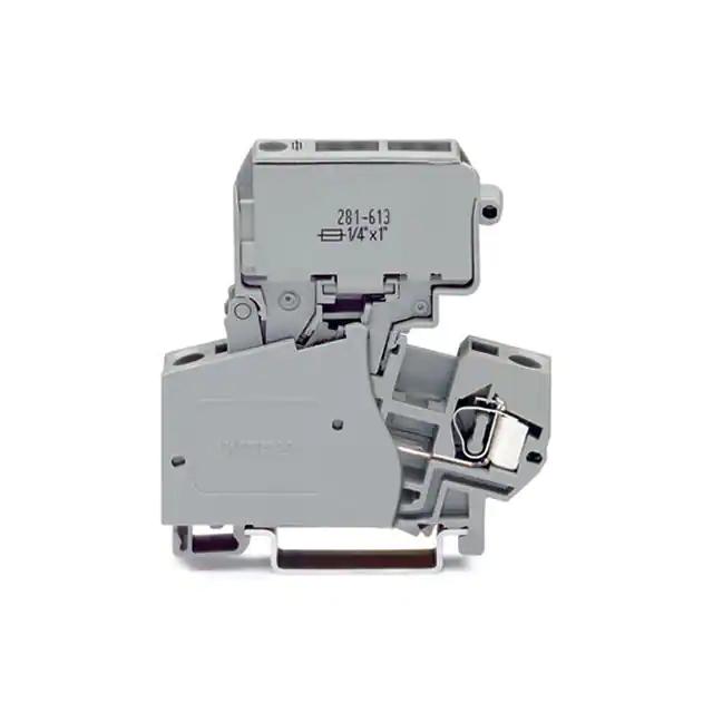 This is manufactured by WAGO Corporation. The manufacturer part number is 281-613. It is assigned with possible HTSUS value of 8536.90.4000. The product is rohs3 compliant. Moreover, it has push in, spring terminal style. It is designed from highly reliable polyamide (pa66), nylon 6/6 insulating material. It comes in disconnect configuration. The product carries possible position value of 2. A 0.08-4mm² of wire gauge. It carries ul94 v-0 of material flammability rating. It is shipped in box. It has a stripping length of 9mm ~ 10mm. Its typical moisture sensitivity level is not applicable. An IEC current of 10 a. While 12-28 awg is its range or wire gauge. It has a long 12 weeks standard lead time. The built-in terminal is 10.0mm wide. Disconnect type - fuse. The nominal voltage of the product is 800v. It has a classic gray colour. It integrates a 1" x 1/4" fuse type. The product carries 1 levels. The product is designated with the ear99 code number