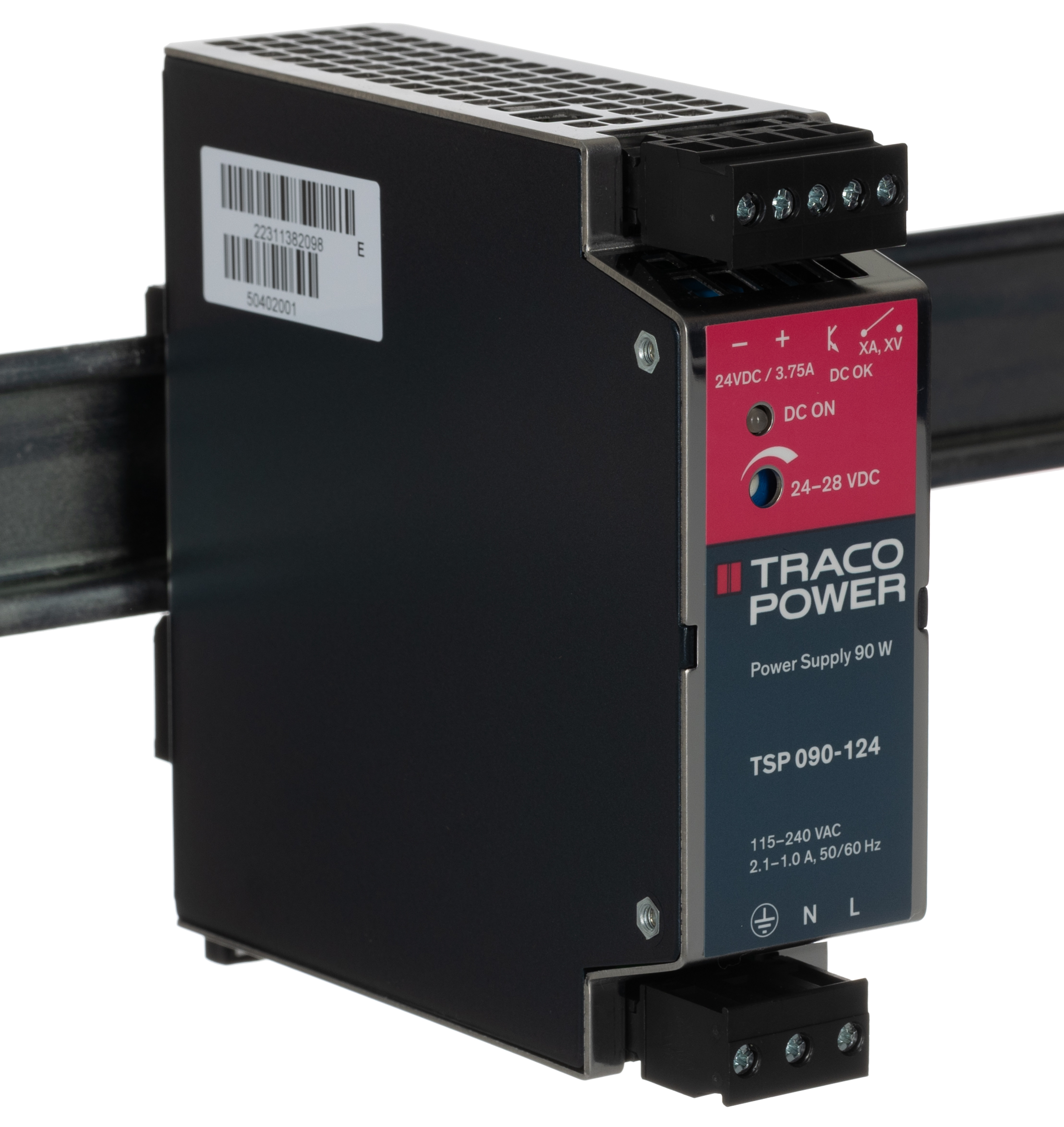 This is TSP Switch Mode DIN Rail Panel Mount Power Supply 90W 24V dc/ 3.75A manufactured by TRACOPOWER. The manufacturer part number is TSP 090-124. Additionally, the product is supplied with 1 outputs. Load Regulation - ±0.5%. The product is available in din rail mount configuration. The product tsp, is a highly preferred choice for users. In addition, the height is 110mm. Furthermore, the product is 35mm wide. The product comes in 110mm depth. It comes in switch mode configuration.