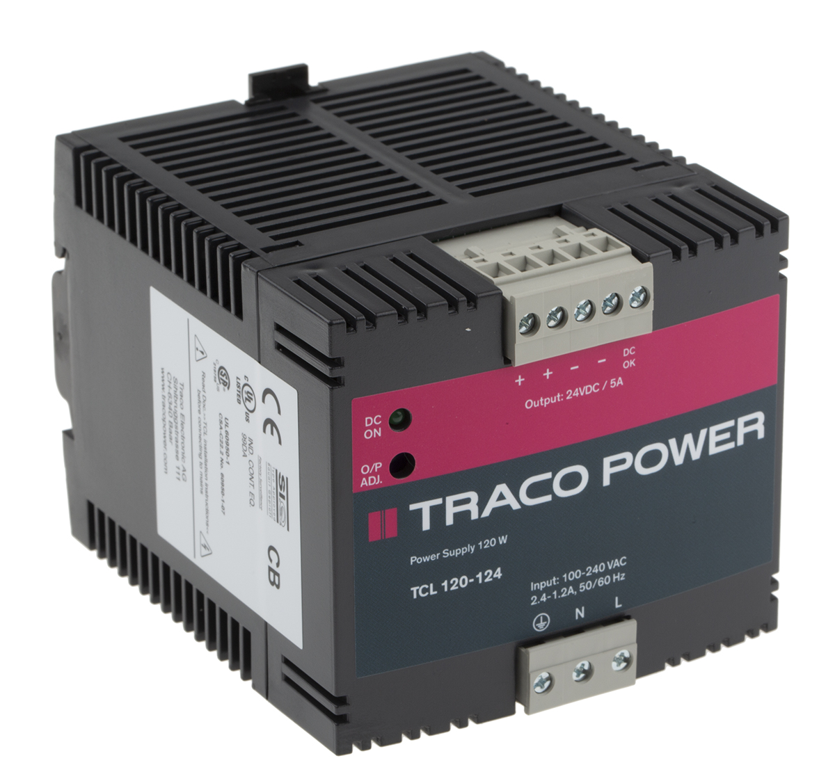 This is TCL Switch Mode DIN Rail Panel Mount Power Supply 120W 24V dc/ 5A manufactured by TRACOPOWER. The manufacturer part number is TCL 120-124. Additionally, the product is supplied with 1 outputs. Load Regulation - ±2.5%. The product is available in din rail mount configuration. The product tcl, is a highly preferred choice for users. In addition, the height is 75mm. Furthermore, the product is 85mm wide. The product comes in 100mm depth. It comes in switch mode configuration.