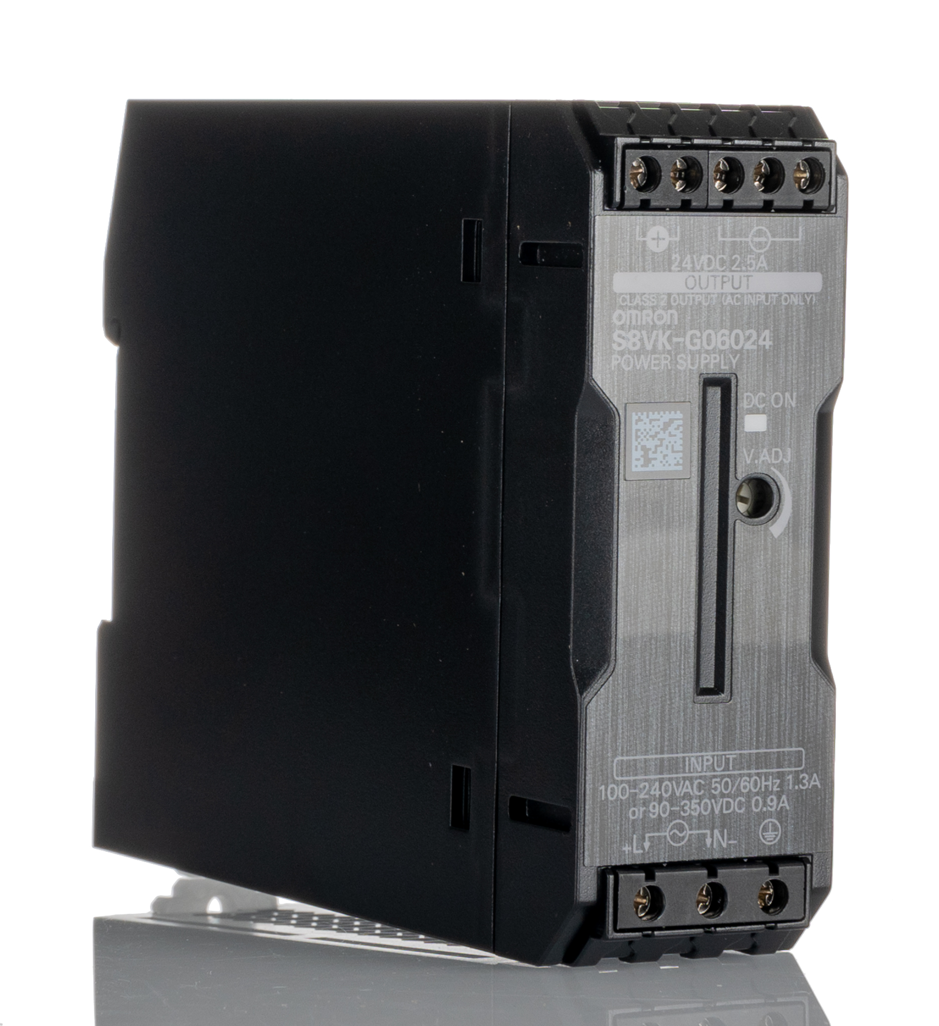 This is S8VK-G Switch Mode DIN Rail Panel Mount Power Supply 60W 24V dc/ 2.5A manufactured by Omron. The manufacturer part number is S8VK-G06024. Additionally, the product is supplied with 1 outputs. The product is available in din rail mount configuration. It is a highly efficient product with an 88% of high efficiency. The product s8vk-g, is a highly preferred choice for users. In addition, the height is 90mm. Furthermore, the product is 32mm wide. The product comes in 110mm depth. It comes in switch mode configuration.