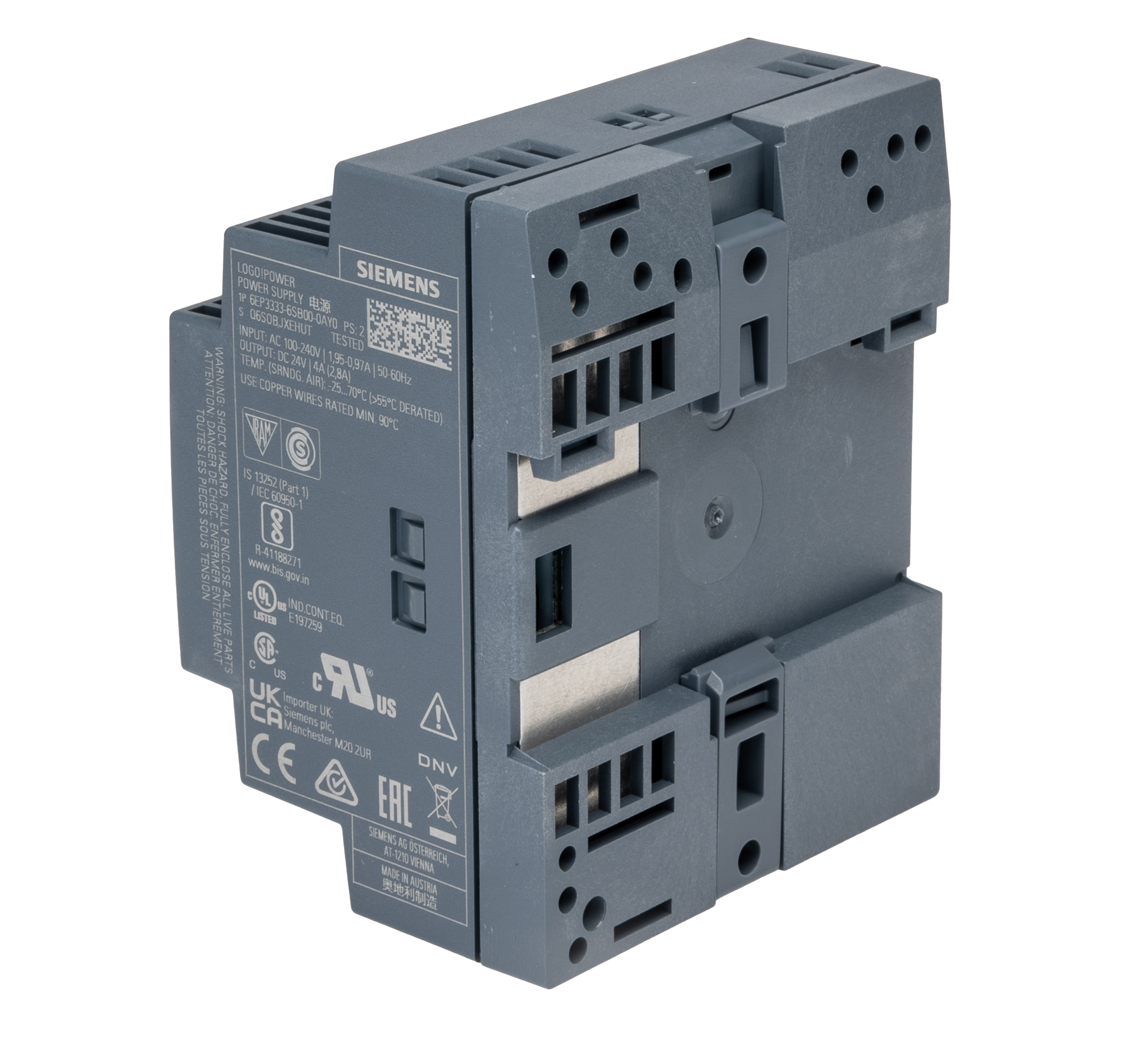 This is DIN Rail Power Supply 96W 24V dc/ 4A manufactured by Siemens. The manufacturer part number is 6EP3333-6SB00-0AY0. Furthermore, the product is 72mm wide. It comes in switch mode configuration. Load Regulation - 0.1%. It is a highly efficient product with an 89% of high efficiency. Additionally, the product is supplied with 1 outputs. The product comes in 53mm depth. The product is available in din rail mount configuration. The product logo!power, is a highly preferred choice for users. In addition, the height is 90mm.