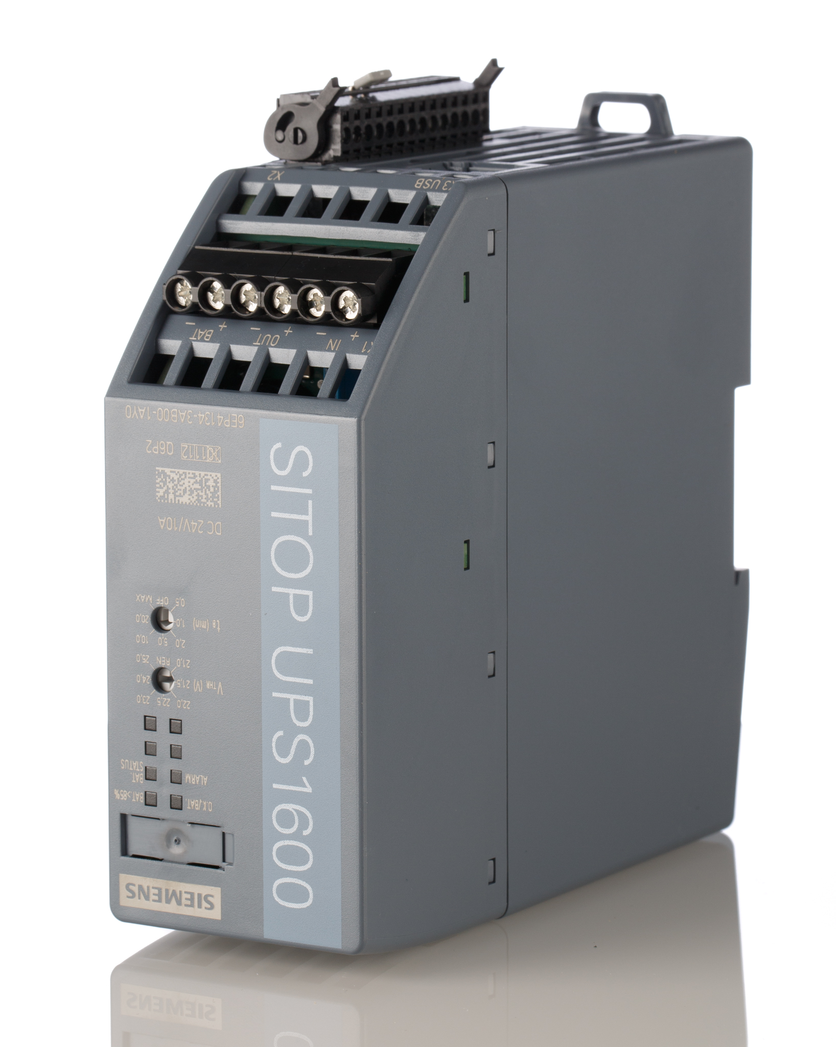 This is SITOP UPS1600 Switch Mode DIN Rail Panel Mount Power Supply 240W 24V dc/ 10A with USB interface manufactured by Siemens. The manufacturer part number is 6EP4134-3AB00-1AY0. Additionally, the product is supplied with 1 outputs. The product is available in din rail mount configuration. It is a highly efficient product with an 97.5% of high efficiency. The product sitop ups1600, is a highly preferred choice for users. In addition, the height is 125mm. Furthermore, the product is 50mm wide. The product comes in 125mm depth. It comes in switch mode configuration.