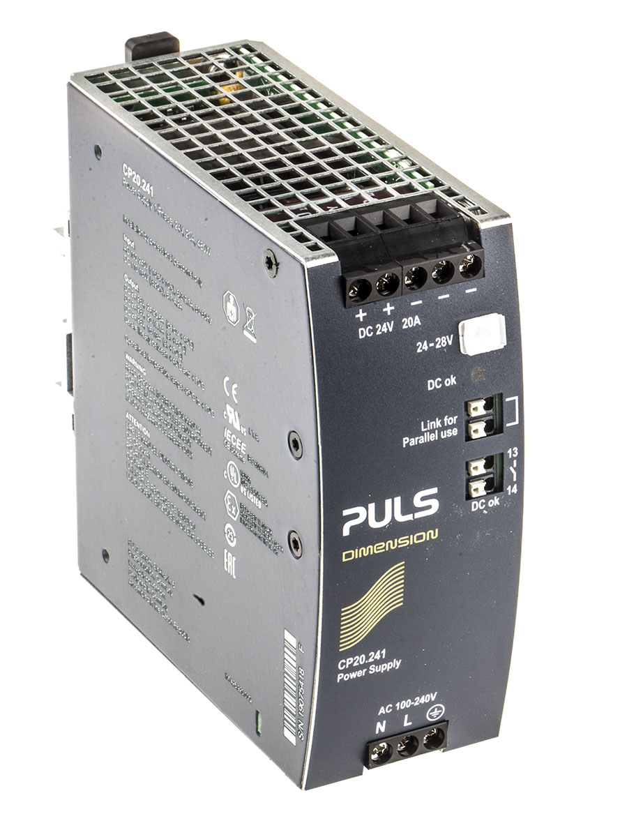 This is CP DIN Rail Power Supply 576W 24V dc/ 20A manufactured by PULS. The manufacturer part number is CP20.241. Furthermore, the product is 48mm wide. It comes in switch mode configuration. Load Regulation - 100 mv, 1000 mv. Additionally, the product is supplied with 1 outputs. The product comes in 127mm depth. The product is available in din rail mount configuration. The product cp, is a highly preferred choice for users. In addition, the height is 124mm.