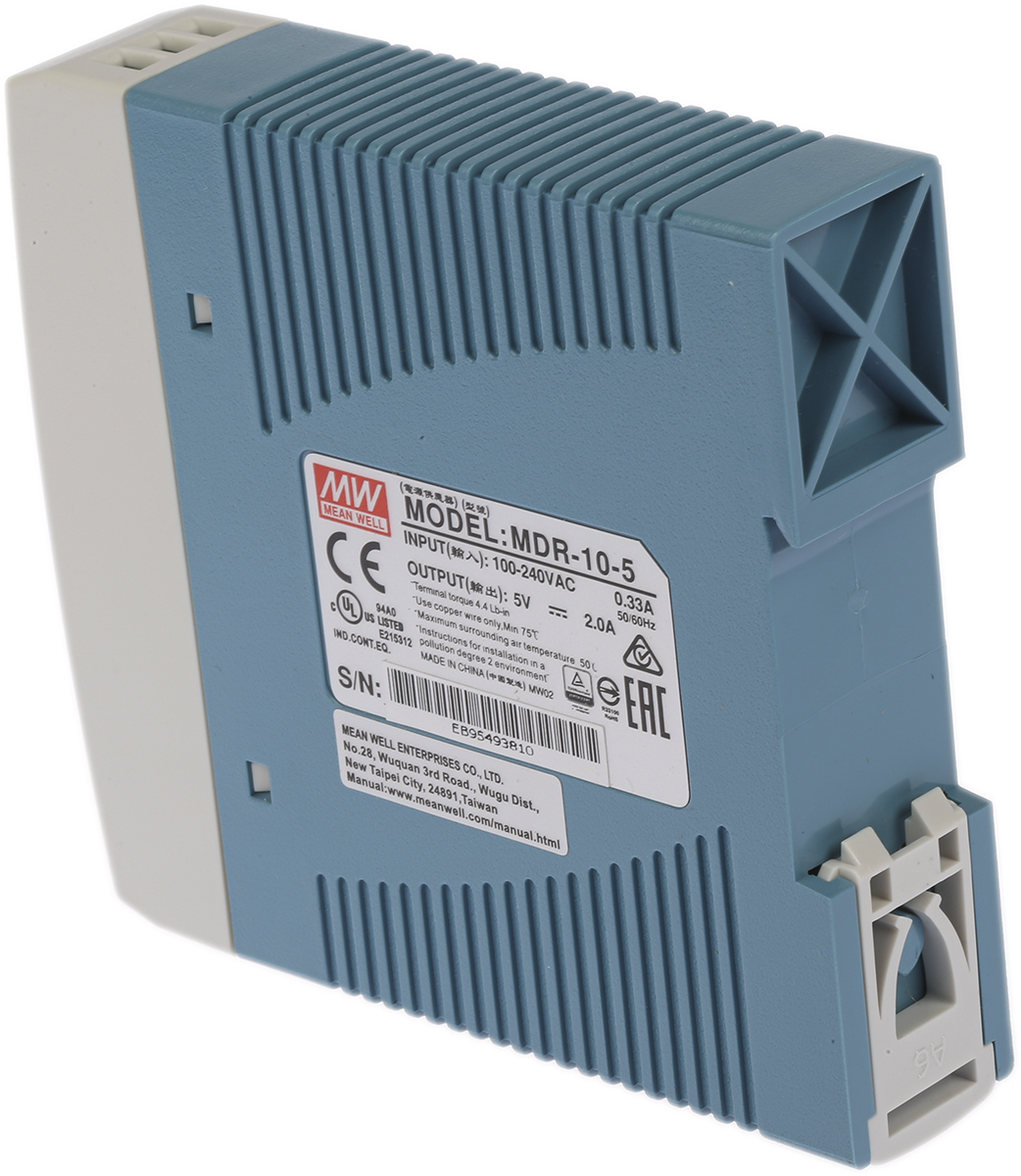This is Switch Mode DIN Rail Panel Mount Power Supply 10W 5V dc/ 2A manufactured by Mean Well. The manufacturer part number is MDR-10-5. Furthermore, the product is 22.5mm wide. It comes in switch mode configuration. Load Regulation - ±5%. Additionally, the product is supplied with 1 outputs. The product comes in 90mm depth. The product is available in din rail mount configuration. The product mdr, is a highly preferred choice for users. In addition, the height is 100mm.
