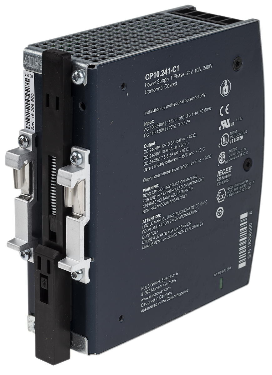 This is DIN Rail Power Supply 24V 10A 240W manufactured by PULS. The manufacturer part number is CP10.241-C1. Furthermore, the product is 39mm wide. It comes in power supply configuration. Load Regulation - 50mv. It is a highly efficient product with an 95.2% of high efficiency. Additionally, the product is supplied with 1 outputs. The product comes in 117mm depth. The product is available in din rail mount configuration. The product cp, is a highly preferred choice for users. In addition, the height is 124mm.