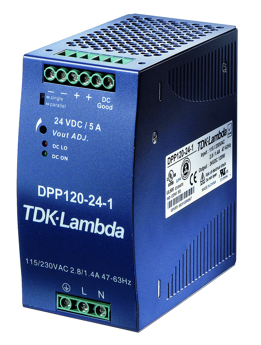 This is DPP120 DIN Rail Power Supply 24V dc Output Voltage 5A output current manufactured by TDK-Lambda. The manufacturer part number is DPP-120-24-1. Additionally, the product is supplied with 1 outputs. Load Regulation - ±5%. The product is available in din rail mount configuration. The product dpp120, is a highly preferred choice for users. In addition, the height is 125mm. It is a highly efficient product with an 86% of high efficiency. The product comes in 116.6mm depth. It comes in power supply configuration.