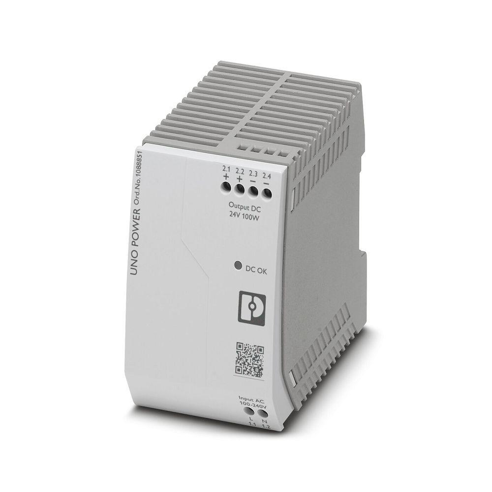 This is UNO POWER Switch Mode PSU 100 → 240V ac ac Input 24V dc dc Output 4.2A Output 100W manufactured by Phoenix Contact. The manufacturer part number is 1088851. The product uno power, is a highly preferred choice for users. It comes in switched mode power supply configuration.