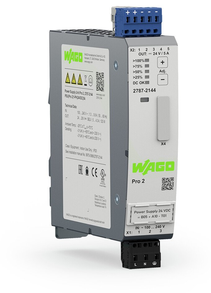 This is 2787 DIN Rail Power Supply 90 → 264 V ac 130 → 240 V dc ac dc Input 24V dc dc Output 5A Output manufactured by Wago. The manufacturer part number is 2787-2144. The product 2787, is a highly preferred choice for users. It comes in din rail power supply configuration.