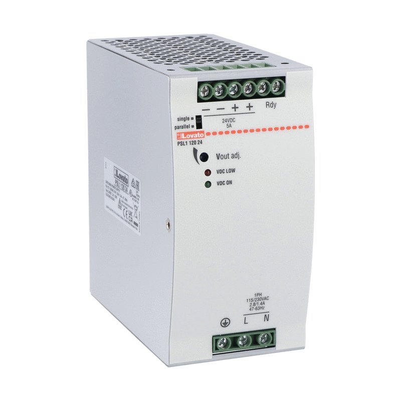 This is PSL DIN Rail Power Supply 230V ac ac Input 24V dc Output 5A Output manufactured by Lovato. The manufacturer part number is PSL112024. The product psl, is a highly preferred choice for users.