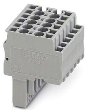 This is manufactured by Phoenix Contact. The manufacturer part number is 3040245. The product spb 2.5/15, is a highly preferred choice for users. The product has a current rating of 24a. It is a type of modular connector accessory. It is assigned with possible HTSUS value of 8536.69.8000. The product is rohs compliant. Moreover, it has screwless - spring cage, tension clamp terminal style. The product also features robust polyamide (pa), nylon housing material. The typical length of the wire strip is 10mm. It comes in plug, female sockets configuration. The product carries possible position value of 15. A 0.08-4mm² of wire gauge. It also a 180° plug wire entry. 1.535" (39.00mm) of insulation height. It carries ul94 v-0 of material flammability rating. It is shipped in bulk. Its typical moisture sensitivity level is 1 (unlimited). An IEC current of 24a. While 12-28 awg is its range or wire gauge. While 300 v is the typical voltage of the product. It has a long 6 weeks standard lead time. The nominal voltage of the product is 500 v. The product is available in free hanging (in-line) configuration. It has a classic gray colour. The product clipline combi spb, is a highly preferred choice for users. It has 15 positions each level. The typical current includes 20 a. The product carries 1 levels. The product is designated with the ear99 code number