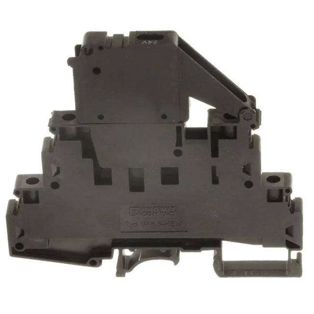 This is manufactured by Phoenix Contact. The manufacturer part number is 3026654. Moreover, the product has a nominal 24 v voltage rating. The product ukk 5-hesiled 24, is a highly preferred choice for users. It is assigned with possible HTSUS value of 8536.69.8000. The product is rohs compliant. Moreover, it has screw terminal style. It is designed from highly reliable polyamide (pa), nylon insulating material. It comes in disconnect configuration. The product carries possible position value of 4. A 0.2-4mm² of wire gauge. It carries ul94 v-0 of material flammability rating. It is shipped in bulk. It has a stripping length of 8mm. Its typical moisture sensitivity level is 1 (unlimited). An IEC current of 6.3 a. While 10-26 awg is its range or wire gauge. While 600v is the typical voltage of the product. It has a long 8 weeks standard lead time. The built-in terminal is 8.2mm wide. Disconnect type - fuse. The nominal voltage of the product is 400v. It has a classic black colour. The product clipline ukk, is a highly preferred choice for users. It integrates a 5mm x 20mm fuse type. The typical current includes 15 a. The product carries 2 levels. The product is designated with the ear99 code number