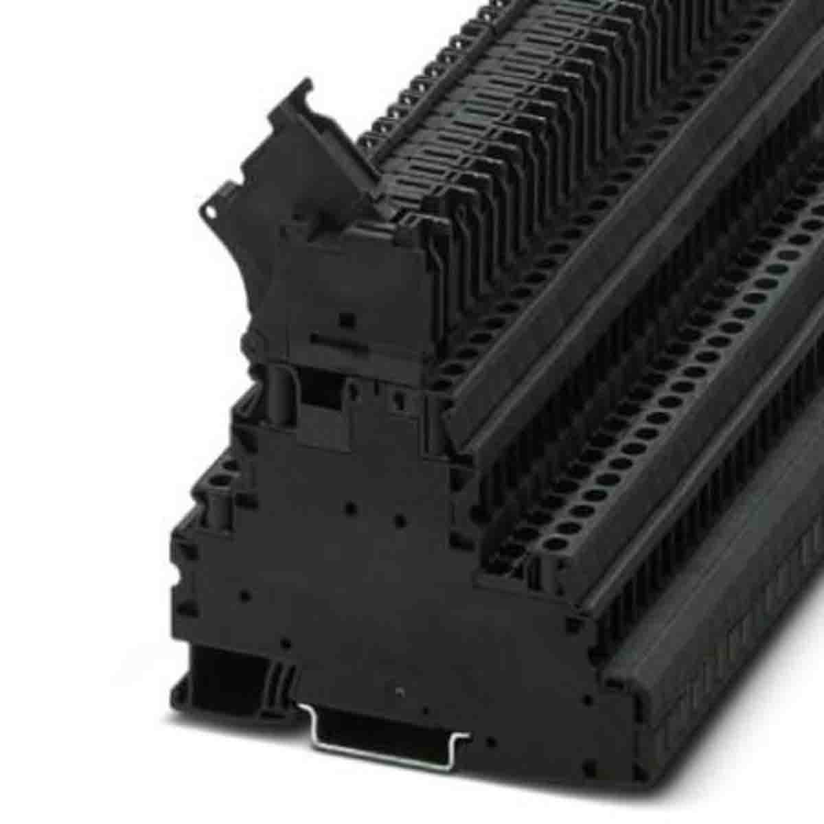 This is Black UT 28A 2 Fused DIN Rail Terminal manufactured by Phoenix Contact. The manufacturer part number is 1013133. The product carries double levels. The product has a current rating of 28a. The product ut, is a highly preferred choice for users.