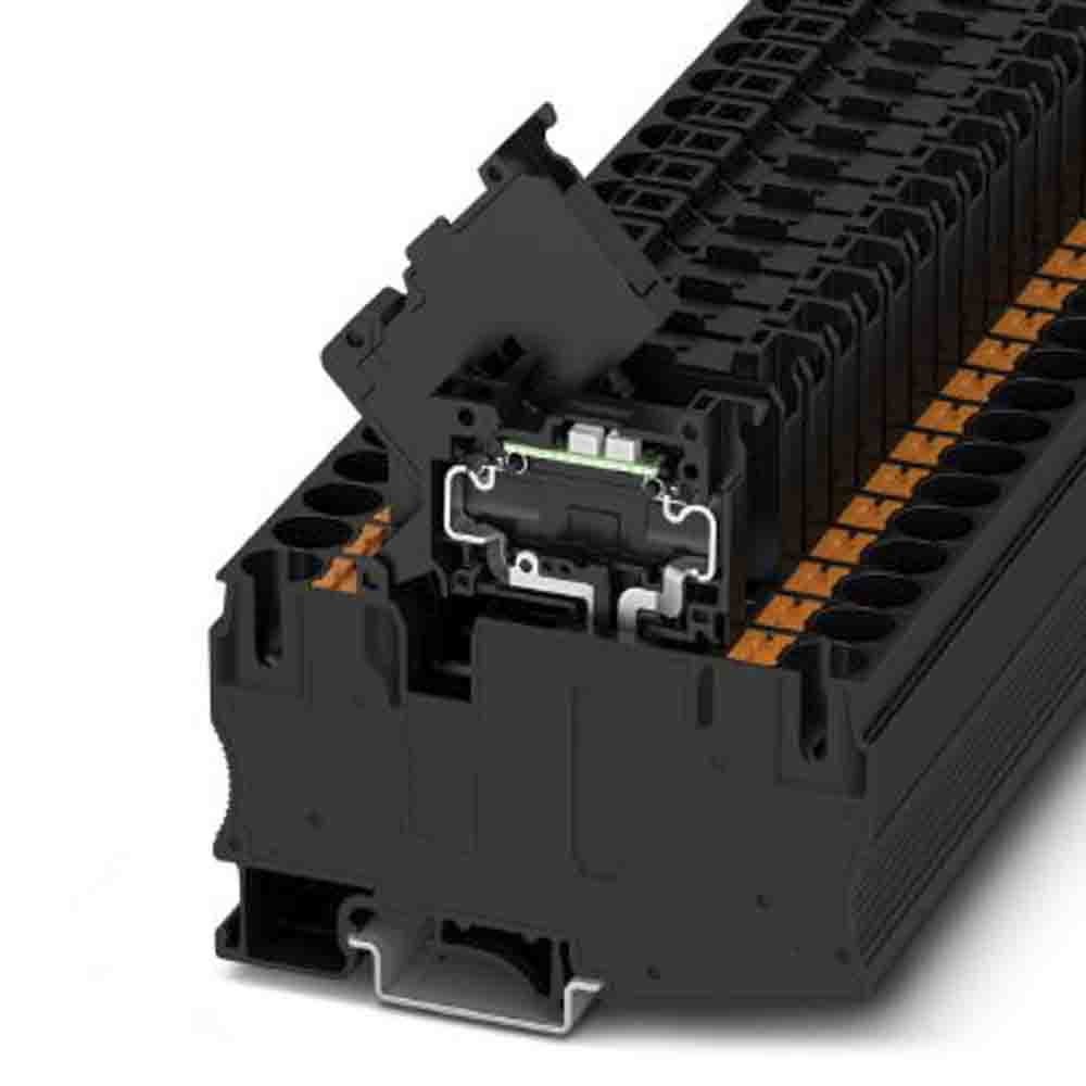 This is Black PT 10 Fuse Terminal Block 0.5 → 16 AWG 250 V manufactured by Phoenix Contact. The manufacturer part number is 1090619. The product has a current rating of 10a. Moreover, the product has a nominal 250 v voltage rating. The product pt 10, is a highly preferred choice for users.
