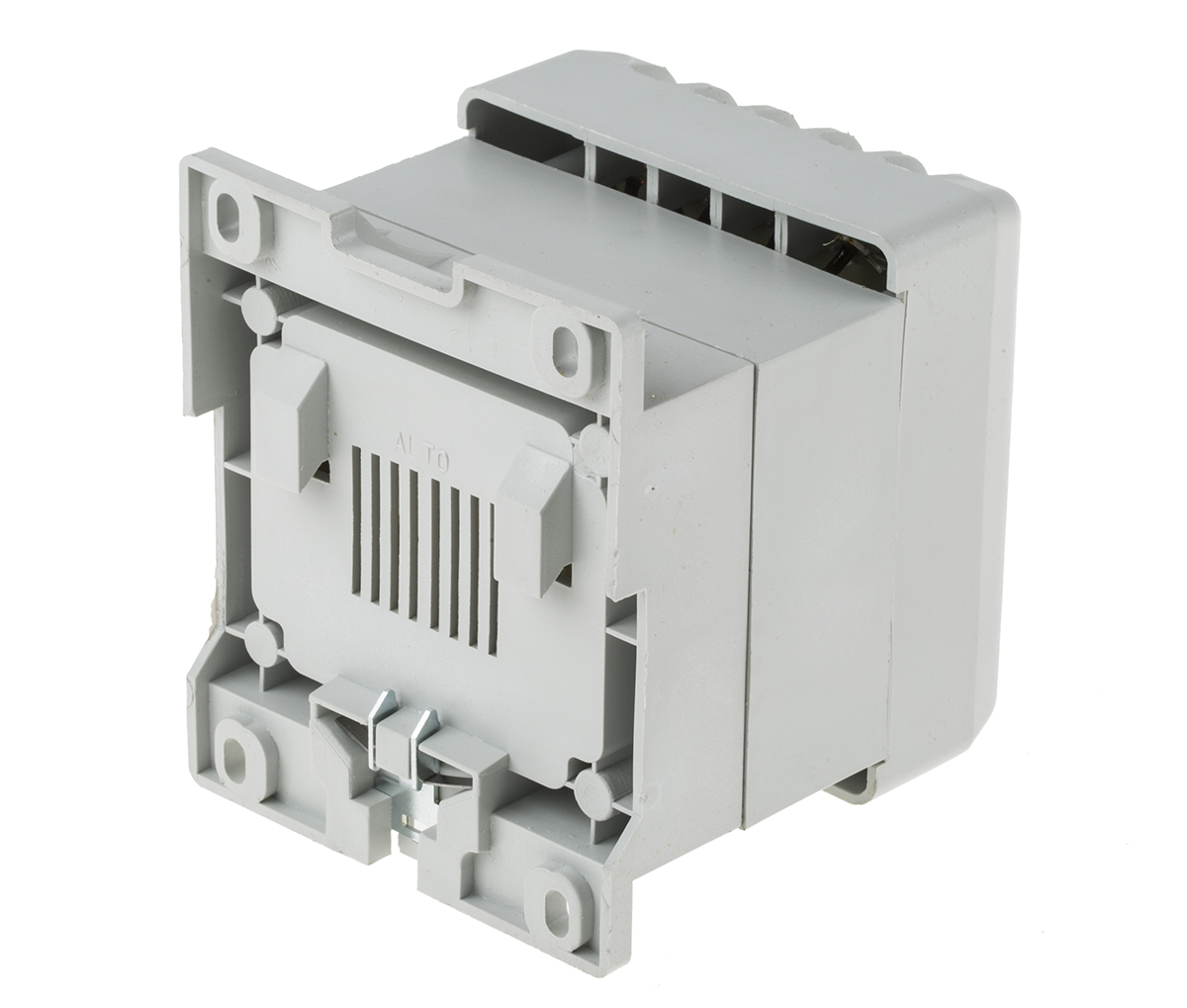This is 63VA Panel Mount Transformer 400V ac Primary 24V ac Secondary manufactured by RS Pro. The manufacturer part number is 880-2615. The given dimensions of the product include 106 x 90 x 87mm. The typical product's weight is 1.5kg. Its accurate length is 106mm. Furthermore, the product is 90mm wide. The product comes in 87mm depth. The product is available in din rail configuration.