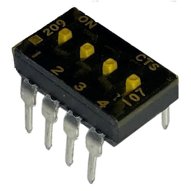 This is manufactured by CTS Electrocomponents. The manufacturer part number is 209-4MST. Washable - yes. It is assigned with possible HTSUS value of 8536.50.9065. The product is rohs3 compliant. The product offers long-lasting services of 2,000 cycles. Moreover, it has pc pin terminal style. The product has -40°c ~ 85°c operating temperature range. It is 0.190" (4.83mm) high above board. The product carries possible position value of 4. Features a raised actuator level. Moreover, the product has a nominal 20vdc voltage rating. In addition, it is reach unaffected. It is shipped in tube. Furthermore, the product is galvanized with excellent gold contact finishing. Its typical moisture sensitivity level is 1 (unlimited). Its accurate length is 0.458" (11.63mm). It has an integral spst circuit. It has a long 8 weeks standard lead time. Additionally, the product's output is 100ma The splendid features of the product include epoxy sealed terminals, tape seal. The product is available in through hole configuration. The product 209, is a highly preferred choice for users. The product carries slide (standard) actuator. Moreover, the product is 0.100" (2.54mm), full The product is made from sturdy beryllium copper materials. The product is designated with the ear99 code number
