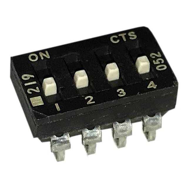 This is manufactured by CTS Electrocomponents. The manufacturer part number is 219-4ESJRF. Washable - no. It is assigned with possible HTSUS value of 8536.50.9065. The product is rohs3 compliant. The product offers long-lasting services of 2,000 cycles. Moreover, it has j lead terminal style. The product has -55°c ~ 85°c operating temperature range. It is 0.224" (5.70mm) high above board. The product carries possible position value of 4. Features a raised actuator level. Moreover, the product has a nominal 20vdc voltage rating. In addition, it is reach unaffected. It is shipped in tape & reel (tr). Furthermore, the product is galvanized with excellent gold contact finishing. Its typical moisture sensitivity level is 1 (unlimited). Its accurate length is 0.458" (11.63mm). It has an integral spst circuit. It has a long 8 weeks standard lead time. Additionally, the product's output is 100ma The splendid features of the product include epoxy sealed terminals. The product is available in surface mount configuration. The product 219, is a highly preferred choice for users. The product carries slide (standard) actuator. Moreover, the product is 0.100" (2.54mm), full The product is made from sturdy beryllium copper materials. The product is designated with the ear99 code number