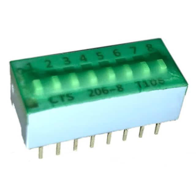 This is manufactured by CTS Electrocomponents. The manufacturer part number is 206-8STN. Washable - yes. It is assigned with possible HTSUS value of 8536.50.9065. The product is rohs3 compliant. The product offers long-lasting services of 10,000 cycles. Moreover, it has pc pin terminal style. The product has -55°c ~ 85°c operating temperature range. It is 0.334" (8.48mm) high above board. The product carries possible position value of 8. Features a raised actuator level. Moreover, the product has a nominal 24vdc voltage rating. In addition, it is reach unaffected. It is shipped in tube. Furthermore, the product is galvanized with excellent gold contact finishing. Its typical moisture sensitivity level is not applicable. Its accurate length is 0.886" (22.50mm). It has an integral spst circuit. It has a long 8 weeks standard lead time. Additionally, the product's output is 50ma The splendid features of the product include epoxy sealed terminals, tape seal. The product is available in through hole configuration. The product 206, is a highly preferred choice for users. The product's body is nicely designed from plastic materials. The product carries slide (standard) actuator. Moreover, the product is 0.100" (2.54mm), full The product is designated with the ear99 code number