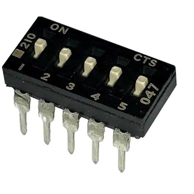 This is manufactured by CTS Electrocomponents. The manufacturer part number is 210-5MS. Washable - no. It is assigned with possible HTSUS value of 8536.50.9065. The product is rohs3 compliant. The product offers long-lasting services of 1,000 cycles. Moreover, it has pc pin terminal style. The product has -40°c ~ 85°c operating temperature range. It is 0.190" (4.83mm) high above board. The product carries possible position value of 5. Features a raised actuator level. Moreover, the product has a nominal 20vdc voltage rating. In addition, it is reach unaffected. It is shipped in tube. Furthermore, the product is galvanized with excellent gold contact finishing. Its typical moisture sensitivity level is 1 (unlimited). Its accurate length is 0.558" (14.17mm). It has an integral spst circuit. It has a long 8 weeks standard lead time. Additionally, the product's output is 100ma The splendid features of the product include epoxy sealed terminals. The product is available in through hole configuration. The product 210, is a highly preferred choice for users. The product carries slide (standard) actuator. Moreover, the product is 0.100" (2.54mm), full The product is made from sturdy beryllium copper materials. The product is designated with the ear99 code number
