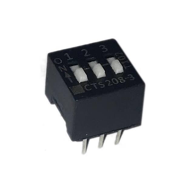 This is manufactured by CTS Electrocomponents. The manufacturer part number is 208-3S. Washable - no. It is assigned with possible HTSUS value of 8536.50.9065. The product is rohs3 compliant. The product offers long-lasting services of 2,000 cycles. Moreover, it has pc pin terminal style. The product has -55°c ~ 85°c operating temperature range. It is 0.334" (8.48mm) high above board. The product carries possible position value of 3. Features a raised actuator level. Moreover, the product has a nominal 24vdc voltage rating. In addition, it is reach unaffected. It is shipped in tube. Furthermore, the product is galvanized with excellent tin contact finishing. Its typical moisture sensitivity level is not applicable. Its accurate length is 0.386" (9.80mm). It has an integral spst circuit. It has a long 8 weeks standard lead time. Additionally, the product's output is 50ma The splendid features of the product include epoxy sealed terminals. The product is available in through hole configuration. The product 208, is a highly preferred choice for users. The product's body is nicely designed from plastic materials. The product carries slide (standard) actuator. Moreover, the product is 0.100" (2.54mm), full The product is designated with the ear99 code number