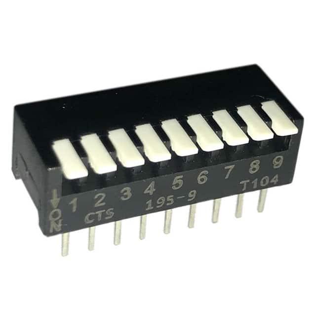 This is manufactured by CTS Electrocomponents. The manufacturer part number is 195-9MS. Washable - no. It is assigned with possible HTSUS value of 8536.50.9065. The product is rohs3 compliant. The product offers long-lasting services of 2,000 cycles. Moreover, it has pc pin terminal style. The product has -40°c ~ 85°c operating temperature range. It is 0.311" (7.90mm) high above board. The product carries possible position value of 9. Features a raised actuator level. Moreover, the product has a nominal 24vdc voltage rating. In addition, it is reach unaffected. It is shipped in tube. Furthermore, the product is galvanized with excellent tin contact finishing. Its typical moisture sensitivity level is 1 (unlimited). Its accurate length is 0.986" (25.04mm). It has an integral spst circuit. It has a long 8 weeks standard lead time. Additionally, the product's output is 50ma The splendid features of the product include epoxy sealed terminals. The product is available in through hole, right angle configuration. The product 195, is a highly preferred choice for users. The product's body is nicely designed from plastic materials. The product carries piano actuator. Moreover, the product is 0.100" (2.54mm), full The product is designated with the ear99 code number