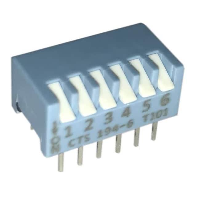 This is manufactured by CTS Electrocomponents. The manufacturer part number is 194-6MSN. Washable - no. It is assigned with possible HTSUS value of 8536.50.9065. The product is rohs3 compliant. The product offers long-lasting services of 7,000 cycles. Moreover, it has pc pin terminal style. The product has -40°c ~ 85°c operating temperature range. It is 0.311" (7.90mm) high above board. The product carries possible position value of 6. Features a raised actuator level. Moreover, the product has a nominal 24vdc voltage rating. In addition, it is reach unaffected. It is shipped in tube. Furthermore, the product is galvanized with excellent gold contact finishing. Its typical moisture sensitivity level is 1 (unlimited). Its accurate length is 0.686" (17.42mm). It has an integral spst circuit. It has a long 8 weeks standard lead time. Additionally, the product's output is 50ma The splendid features of the product include epoxy sealed terminals. The product is available in through hole, right angle configuration. The product 194, is a highly preferred choice for users. The product's body is nicely designed from plastic materials. The product carries piano actuator. Moreover, the product is 0.100" (2.54mm), full The product is designated with the ear99 code number
