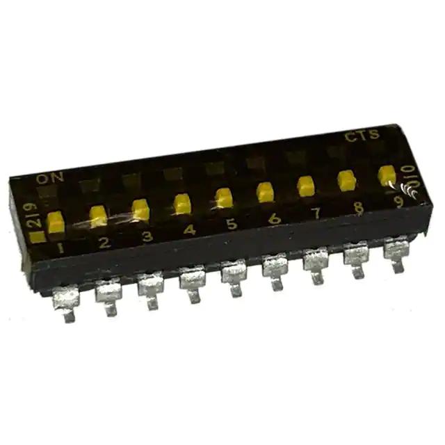 This is manufactured by CTS Electrocomponents. The manufacturer part number is 219-9MSTF. Washable - yes. It is assigned with possible HTSUS value of 8536.50.9065. The product is rohs3 compliant. The product offers long-lasting services of 2,000 cycles. Moreover, it has gull wing terminal style. The product has -55°c ~ 85°c operating temperature range. It is 0.170" (4.33mm) high above board. The product carries possible position value of 9. Features a raised actuator level. Moreover, the product has a nominal 20vdc voltage rating. In addition, it is reach unaffected. It is shipped in tube. Furthermore, the product is galvanized with excellent gold contact finishing. Its typical moisture sensitivity level is 1 (unlimited). Its accurate length is 0.958" (24.33mm). It has an integral spst circuit. It has a long 8 weeks standard lead time. Additionally, the product's output is 100ma The splendid features of the product include epoxy sealed terminals, tape seal. The product is available in surface mount configuration. The product 219, is a highly preferred choice for users. The product carries slide (standard) actuator. Moreover, the product is 0.100" (2.54mm), full The product is made from sturdy beryllium copper materials. The product is designated with the ear99 code number