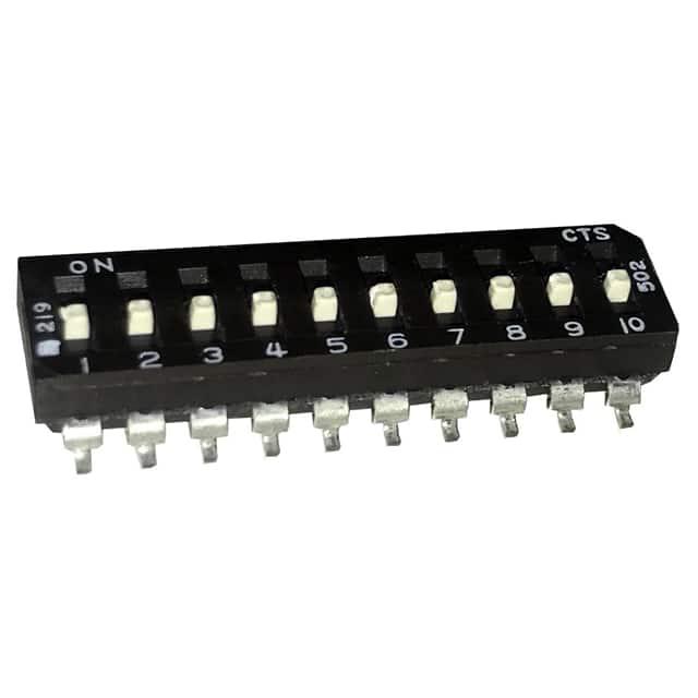 This is manufactured by CTS Electrocomponents. The manufacturer part number is 219-10ESF. Washable - no. It is assigned with possible HTSUS value of 8536.50.9065. The product is rohs3 compliant. The product offers long-lasting services of 2,000 cycles. Moreover, it has gull wing terminal style. The product has -55°c ~ 85°c operating temperature range. It is 0.184" (4.67mm) high above board. The product carries possible position value of 10. Features a raised actuator level. Moreover, the product has a nominal 20vdc voltage rating. In addition, it is reach unaffected. It is shipped in tube. Furthermore, the product is galvanized with excellent gold contact finishing. Its typical moisture sensitivity level is 1 (unlimited). Its accurate length is 1.058" (26.87mm). It has an integral spst circuit. It has a long 8 weeks standard lead time. Additionally, the product's output is 100ma The splendid features of the product include epoxy sealed terminals. The product is available in surface mount configuration. The product 219, is a highly preferred choice for users. The product carries slide (standard) actuator. Moreover, the product is 0.100" (2.54mm), full The product is made from sturdy beryllium copper materials. The product is designated with the ear99 code number