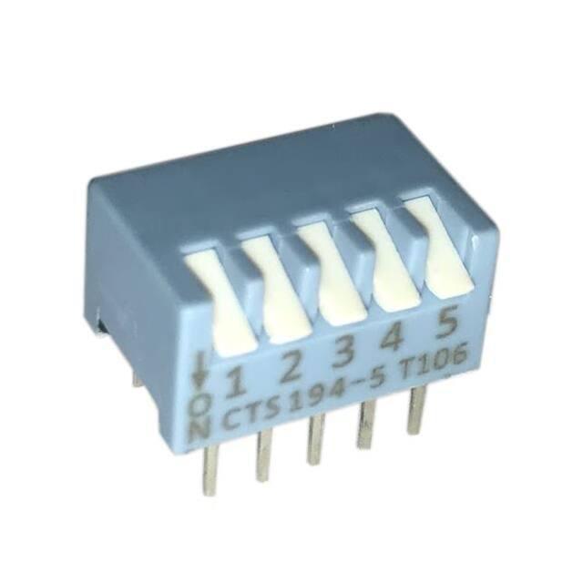 This is manufactured by CTS Electrocomponents. The manufacturer part number is 194-5MSN. Washable - no. It is assigned with possible HTSUS value of 8536.50.9065. The product is rohs3 compliant. The product offers long-lasting services of 7,000 cycles. Moreover, it has pc pin terminal style. The product has -40°c ~ 85°c operating temperature range. It is 0.311" (7.90mm) high above board. The product carries possible position value of 5. Features a raised actuator level. Moreover, the product has a nominal 24vdc voltage rating. In addition, it is reach unaffected. It is shipped in tube. Furthermore, the product is galvanized with excellent gold contact finishing. Its typical moisture sensitivity level is 1 (unlimited). Its accurate length is 0.586" (14.88mm). It has an integral spst circuit. It has a long 8 weeks standard lead time. Additionally, the product's output is 50ma The splendid features of the product include epoxy sealed terminals. The product is available in through hole, right angle configuration. The product 194, is a highly preferred choice for users. The product's body is nicely designed from plastic materials. The product carries piano actuator. Moreover, the product is 0.100" (2.54mm), full The product is designated with the ear99 code number
