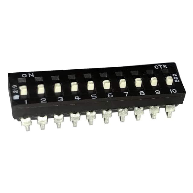 This is manufactured by CTS Electrocomponents. The manufacturer part number is 219-10ESJF. Washable - no. It is assigned with possible HTSUS value of 8536.50.9065. The product is rohs3 compliant. The product offers long-lasting services of 2,000 cycles. Moreover, it has j lead terminal style. The product has -55°c ~ 85°c operating temperature range. It is 0.224" (5.70mm) high above board. The product carries possible position value of 10. Features a raised actuator level. Moreover, the product has a nominal 20vdc voltage rating. In addition, it is reach unaffected. It is shipped in tube. Furthermore, the product is galvanized with excellent gold contact finishing. Its typical moisture sensitivity level is 1 (unlimited). Its accurate length is 1.058" (26.87mm). It has an integral spst circuit. It has a long 8 weeks standard lead time. Additionally, the product's output is 100ma The splendid features of the product include epoxy sealed terminals. The product is available in surface mount configuration. The product 219, is a highly preferred choice for users. The product carries slide (standard) actuator. Moreover, the product is 0.100" (2.54mm), full The product is made from sturdy beryllium copper materials. The product is designated with the ear99 code number