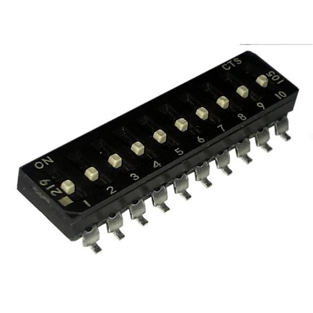 This is manufactured by CTS Electrocomponents. The manufacturer part number is 219-10MSF. Washable - no. It is assigned with possible HTSUS value of 8536.50.9065. The product is rohs3 compliant. The product offers long-lasting services of 2,000 cycles. Moreover, it has gull wing terminal style. The product has -55°c ~ 85°c operating temperature range. It is 0.170" (4.33mm) high above board. The product carries possible position value of 10. Features a raised actuator level. Moreover, the product has a nominal 20vdc voltage rating. In addition, it is reach unaffected. It is shipped in tube. Furthermore, the product is galvanized with excellent gold contact finishing. Its typical moisture sensitivity level is 1 (unlimited). Its accurate length is 1.058" (26.87mm). It has an integral spst circuit. It has a long 8 weeks standard lead time. Additionally, the product's output is 100ma The splendid features of the product include epoxy sealed terminals. The product is available in surface mount configuration. The product 219, is a highly preferred choice for users. The product carries slide (standard) actuator. Moreover, the product is 0.100" (2.54mm), full The product is made from sturdy beryllium copper materials. The product is designated with the ear99 code number