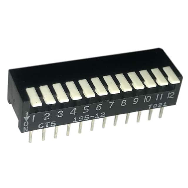 This is manufactured by CTS Electrocomponents. The manufacturer part number is 195-12MS. Washable - no. It is assigned with possible HTSUS value of 8536.50.9065. The product is rohs3 compliant. The product offers long-lasting services of 2,000 cycles. Moreover, it has pc pin terminal style. The product has -40°c ~ 85°c operating temperature range. It is 0.311" (7.90mm) high above board. The product carries possible position value of 12. Features a raised actuator level. Moreover, the product has a nominal 24vdc voltage rating. In addition, it is reach unaffected. It is shipped in tube. Furthermore, the product is galvanized with excellent tin contact finishing. Its typical moisture sensitivity level is 1 (unlimited). Its accurate length is 1.286" (32.66mm). It has an integral spst circuit. It has a long 8 weeks standard lead time. Additionally, the product's output is 50ma The splendid features of the product include epoxy sealed terminals. The product is available in through hole, right angle configuration. The product 195, is a highly preferred choice for users. The product's body is nicely designed from plastic materials. The product carries piano actuator. Moreover, the product is 0.100" (2.54mm), full The product is designated with the ear99 code number