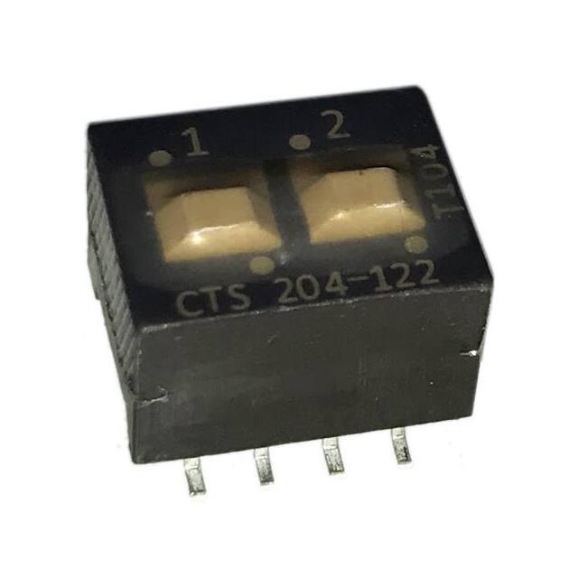 This is manufactured by CTS Electrocomponents. The manufacturer part number is 204-122ST. Washable - yes. It is assigned with possible HTSUS value of 8536.50.9065. The product is rohs3 compliant. The product offers long-lasting services of 5,000 cycles. Moreover, it has gull wing terminal style. The product has -55°c ~ 85°c operating temperature range. It is 0.394" (10.00mm) high above board. The product carries possible position value of 2. Features a raised actuator level. Moreover, the product has a nominal 24vdc voltage rating. In addition, it is reach unaffected. It is shipped in tube. Furthermore, the product is galvanized with excellent gold contact finishing. Its typical moisture sensitivity level is 1 (unlimited). Its accurate length is 0.486" (12.34mm). It has an integral spdt circuit. It has a long 8 weeks standard lead time. Additionally, the product's output is 50ma The splendid features of the product include epoxy sealed terminals, tape seal. The product is available in surface mount configuration. The product 204, is a highly preferred choice for users. The product's body is nicely designed from plastic materials. The product carries slide (standard) actuator. Moreover, the product is 0.100" (2.54mm), full The product is designated with the ear99 code number